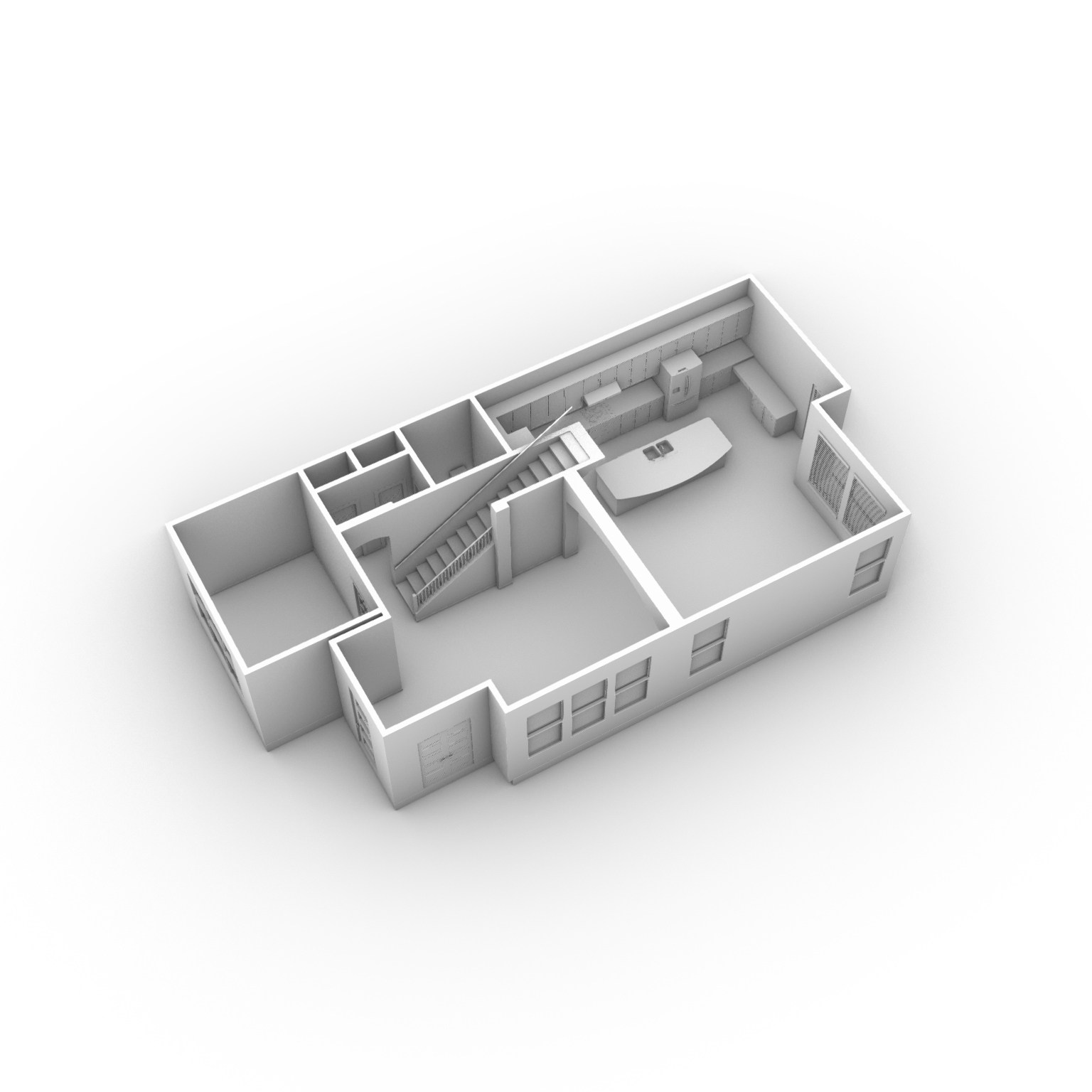 Representational modeling is about using 3D design tools to create white-box documentation for the space that can be used for rough and ready renderings visualization studies. I produced this model for a project to begin ideation of design concepts.