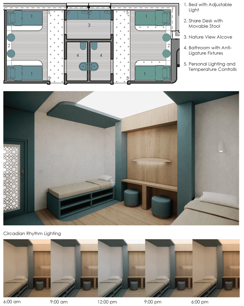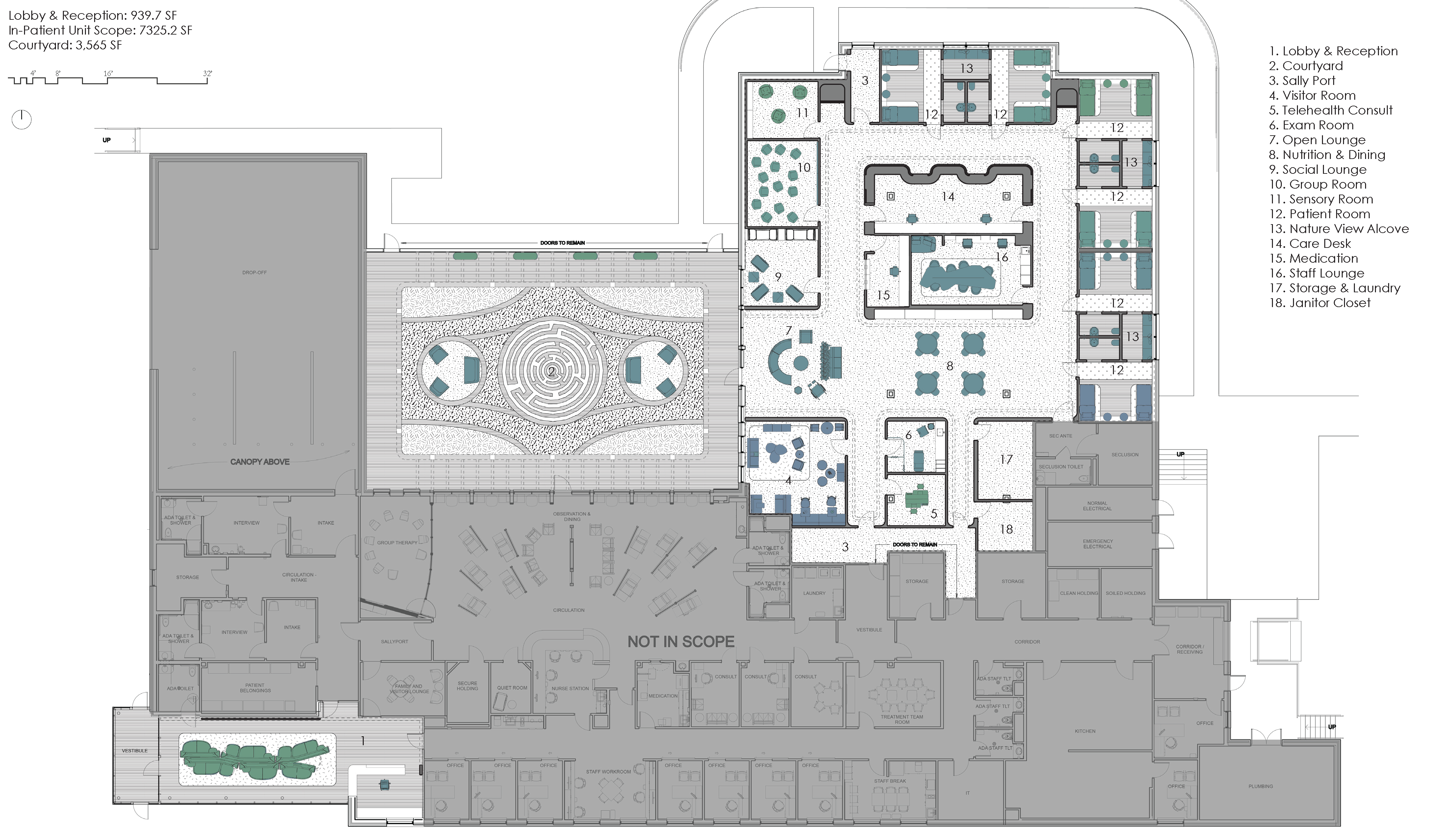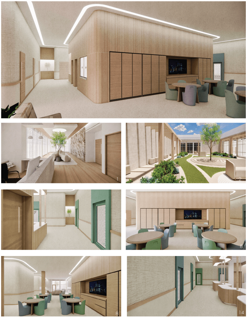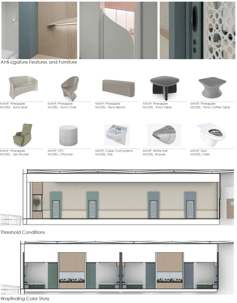 This is a speculative/hypothetical design project: a thought experiment in reimagining behavioral health environments around trauma-informed principles, dignity, and the calming presence of nature.