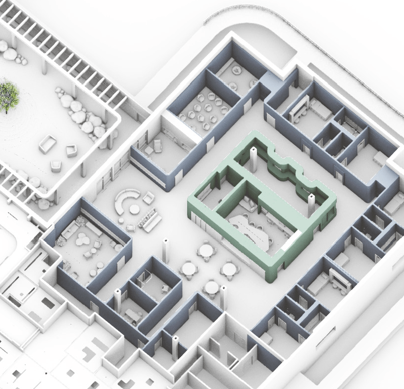 Rooted in the regenerative idea of verdance / lush greenness, the design embraces softness, natural materials, and curved geometry to create spaces that are intended to feel safe without being sterile. Earth tones, diffused light, and plant-integrated architecture offer a sensory environment that supports regulation and reflection. The layout prioritizes choice, control, and psychological safety.