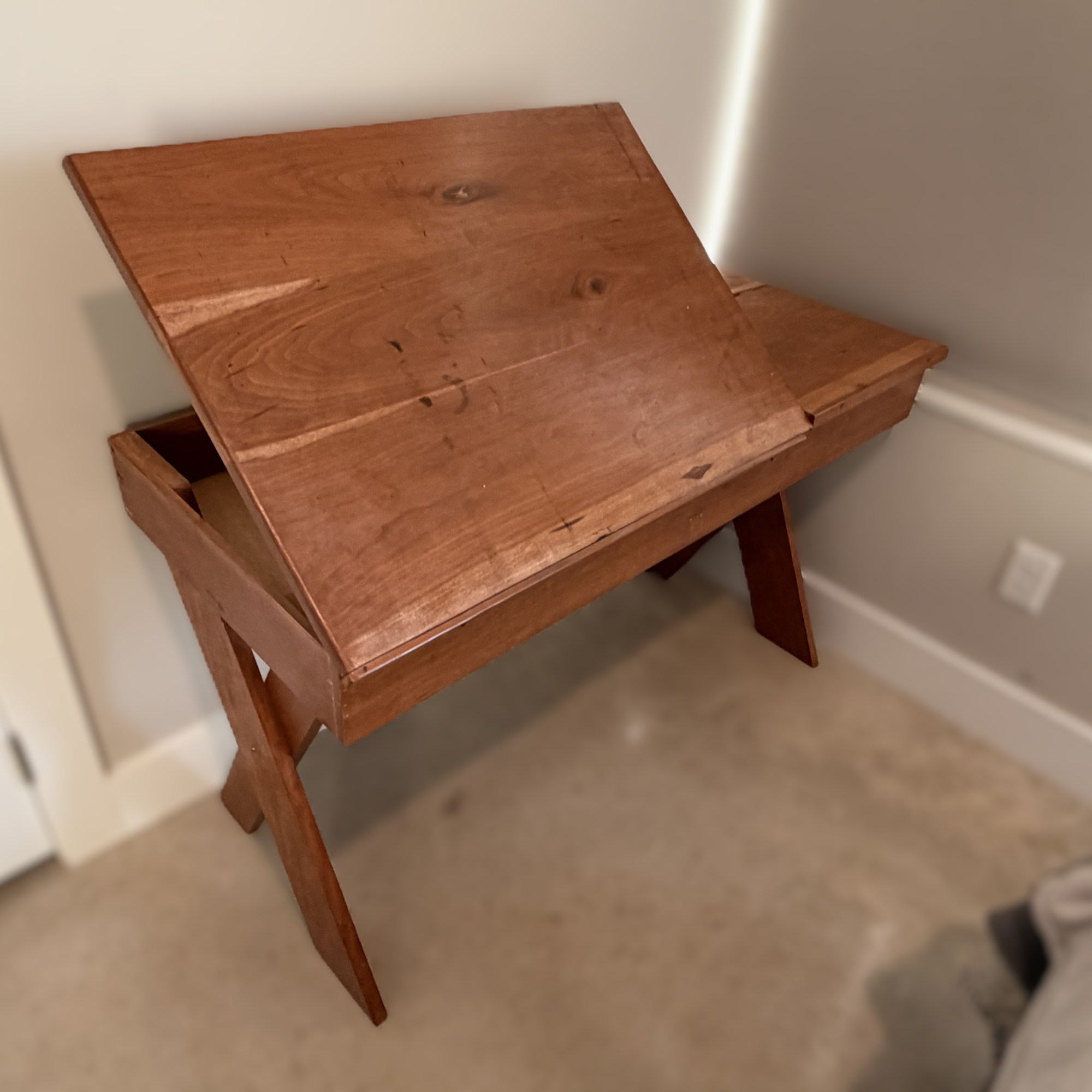 Xie Maggie Hill – Portfolio HOME | ACADEMIC | ARTIFACTUAL | APPLIED | MENTIONS | ABOUT Stationary Drafting Desk Materials: Cherry Wood, Plywood Finish: Natural Wood Tung Oil With Help From: Larry Hill (Father), Lee Roy Kern (Grandfather)