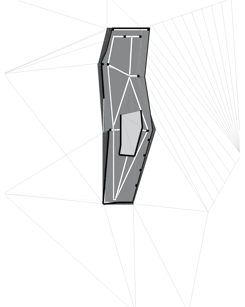 This project explores the in-between and the potential occupation of the “in-between.” It began by developing a tectonic framing structure from a basic rectangular prism. The process was continued and planes were added strategically to the iterations to explore tectonic and stereotomic characteristics.