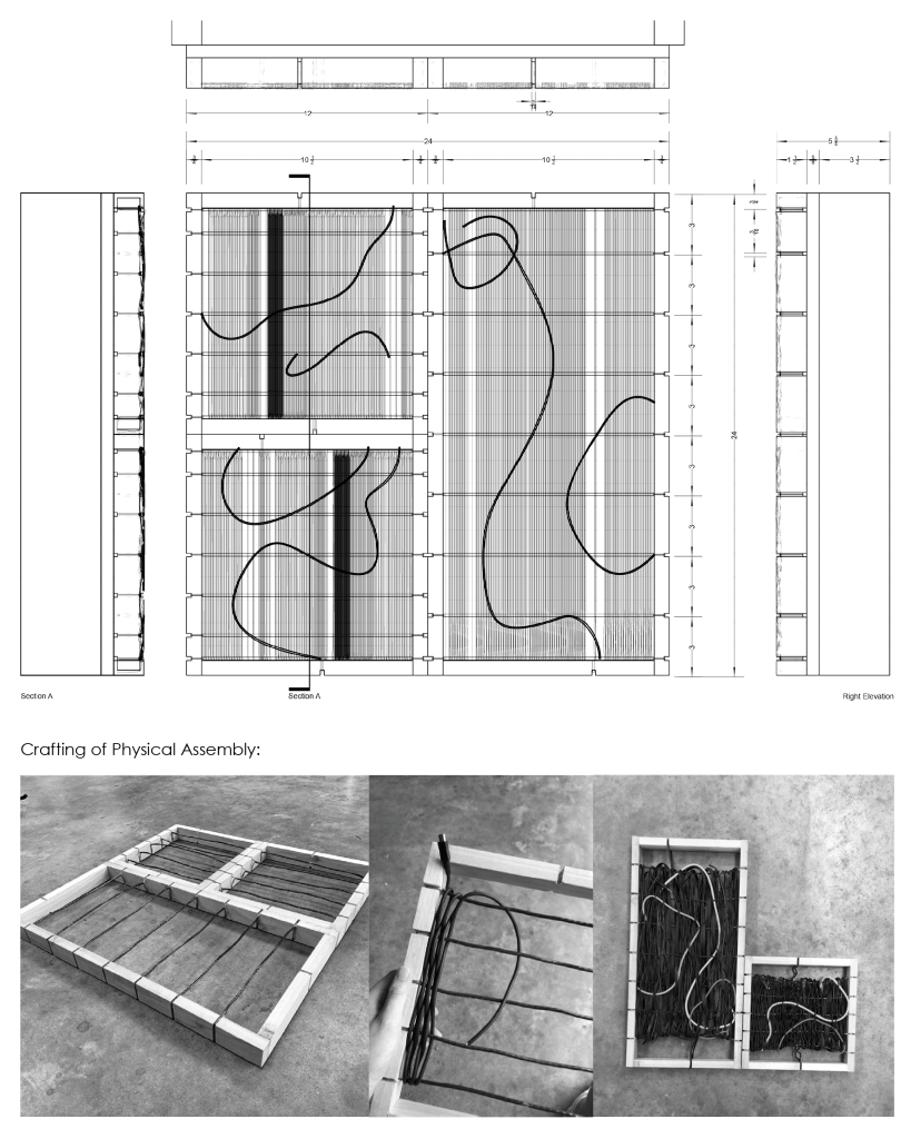 This assembly is dedicated to exploring possible applications of e-waste in the built environment, particularly through a wall assembly.