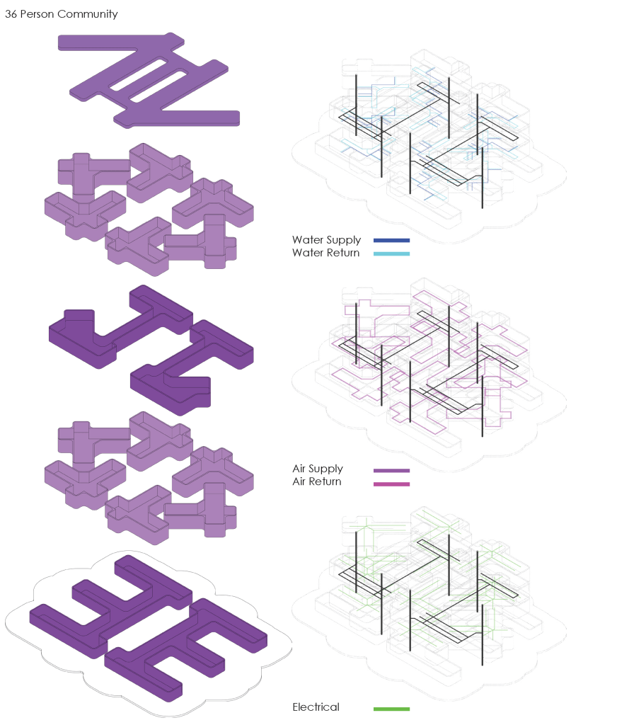 Living systems are defined as ecologies of interacting living and non-living entities that symbiotically sustain life and energy flows. Perpetual flows of air, light, and matter sustain an organism’s basic needs for living. To provide and expand on basic human needs, communities rely on their ability to access basic resources (air, water, food, shelter), however current cities do not provide adequate access to these resources for all populates. Transferring and sharing energy and resources between buildings is one way to begin to address problems in urban contexts.